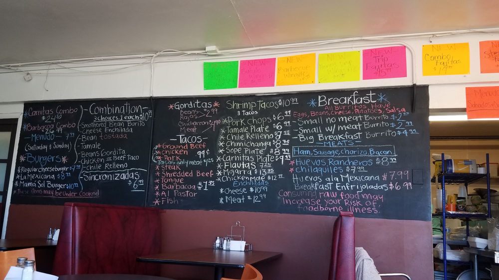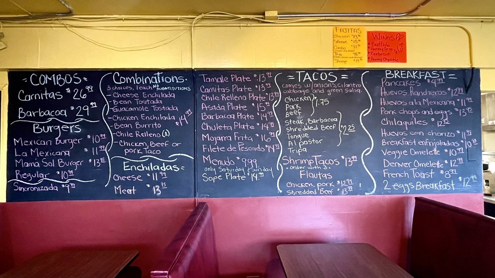 Mama Sol Cocina is a Mexican restaurant located in Littleton, CO, offering breakfast, brunch, lunch, and dinner options. Known for their generous portion sizes, fresh ingredients, and delicious flavors, customers rave about the small breakfast burritos and street tacos like the Quesabirria and barbacoa. The menu features a variety of dishes from burgers to Gorditas, all made with care and served hot. The casual, divey atmosphere is perfect for a quick meal or gathering with friends and family. With options for takeout, delivery, and catering, Mama Sol Cocina aims to provide authentic Mexican cuisine in a welcoming setting. Visitors appreciate the friendly staff, clean seating area, and ample parking. Make sure to try their French toast, pancakes, and refreshing Jarritos flavors for a truly satisfying dining experience at Mama Sol Cocina.